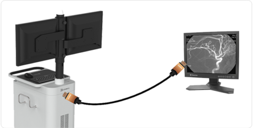 It can support additional 3rd monitor through a HDMI cable to let the live images shared with other Medical Teams in real time over an internal network